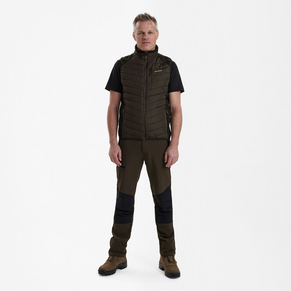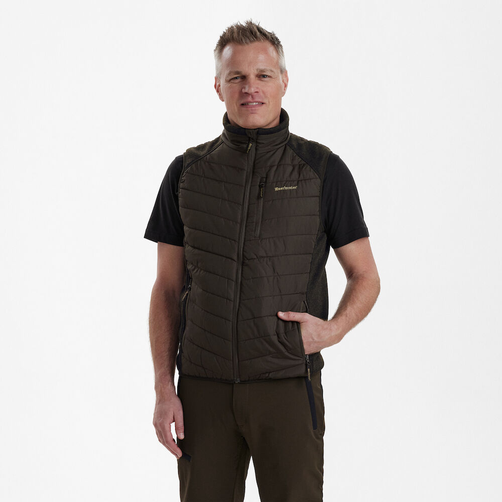 Эластичная ткань на плечах и боковых вставках придает жилету с подкладкой Deer hunter Moor дополнительный комфорт. Эластичная окантовка пройм и низа изделия создает идеальный силуэт. Жилет с подкладкой Deerhunter moor, идеально подходящий для весны и лета, поставляется в комплекте с утеплителем Deer-Tex® Temp, обеспечивающим исключительное тепло и мягкость