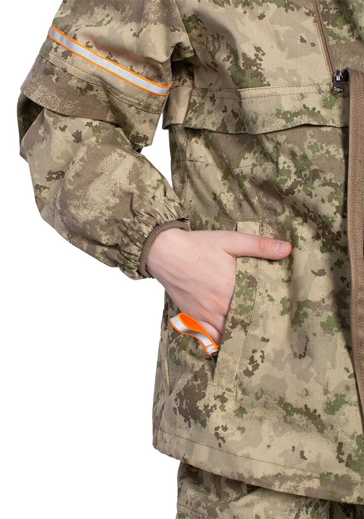 - Световозвратные элементы и вставки из яркой ткани для обозначения фигуры в лесной местности