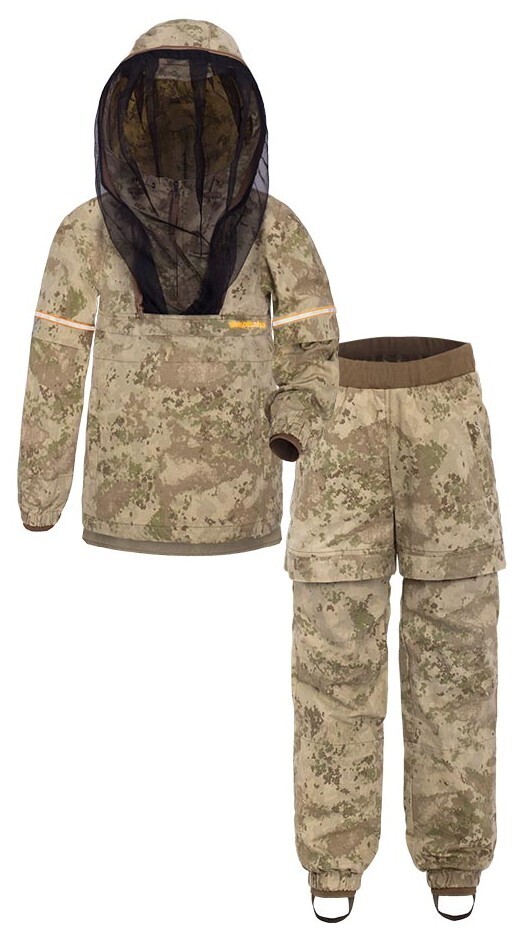 - Куртка типа «анорак». Горизонтальные складки-ловушки на полочке, спинке, брюках, рукавах куртки преграждают движение насекомого вверх.