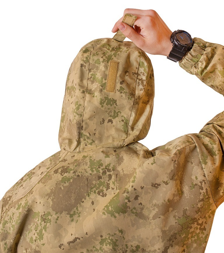 - Куртка типа «анорак». Горизонтальные складки-ловушки на полочке, спинке, брюках, рукавах куртки преграждают движение насекомого вверх. В нижней части куртки подкладка, которая заправляется в брюки.