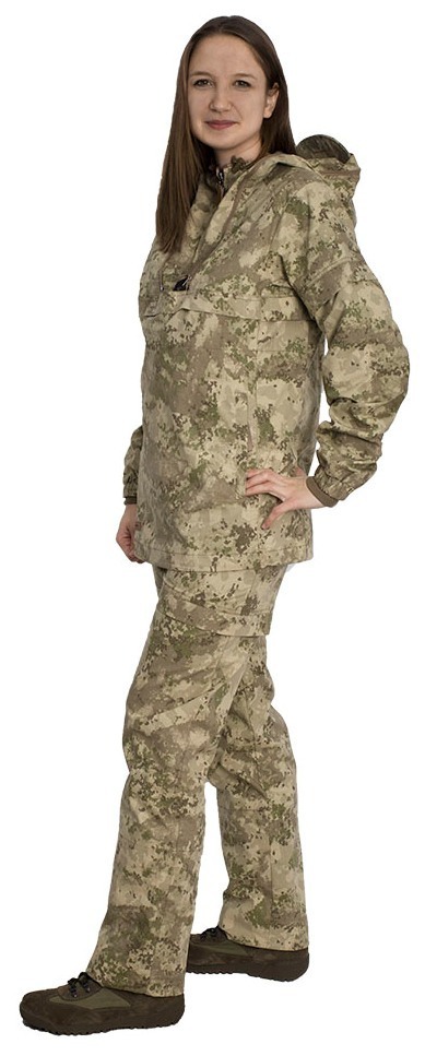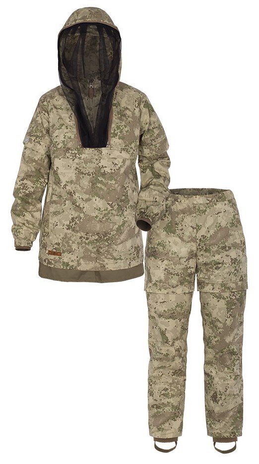 - Куртка типа «анорак». Горизонтальные складки-ловушки на полочке, спинке, брюках, рукавах куртки преграждают движение насекомого вверх. В нижней части куртки подкладка, которая заправляется в брюки.