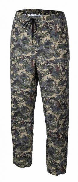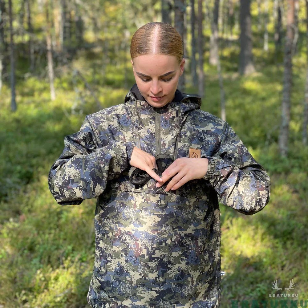 Ткань изготовлена из чрезвычайно плотного и износостойкого рипстопа. Цвет и узоры предназначены для того, чтобы вывести охотника из поля зрения животного.